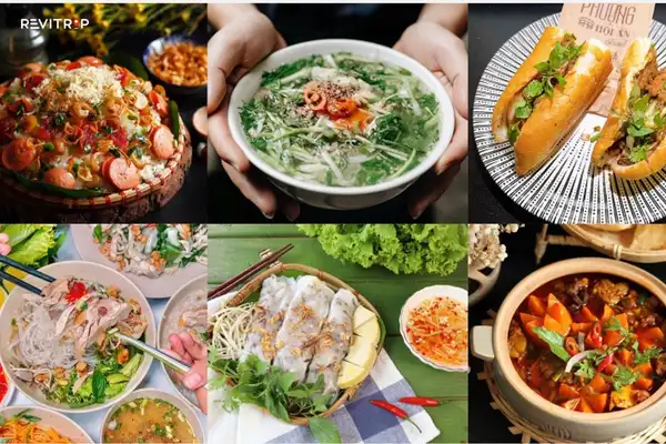 Typical dishes include pho (rice noodle soup), cha gio (spring rolls), banh mi (baguette sandwich), and bun cha (grilled pork with noodles).